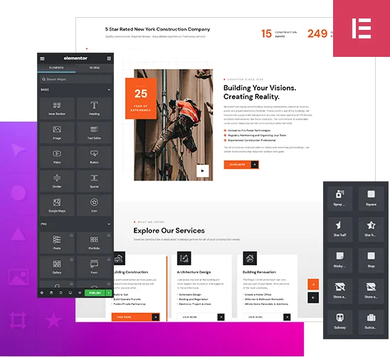 Elementor Page Builder +100 Elements & Blocks.